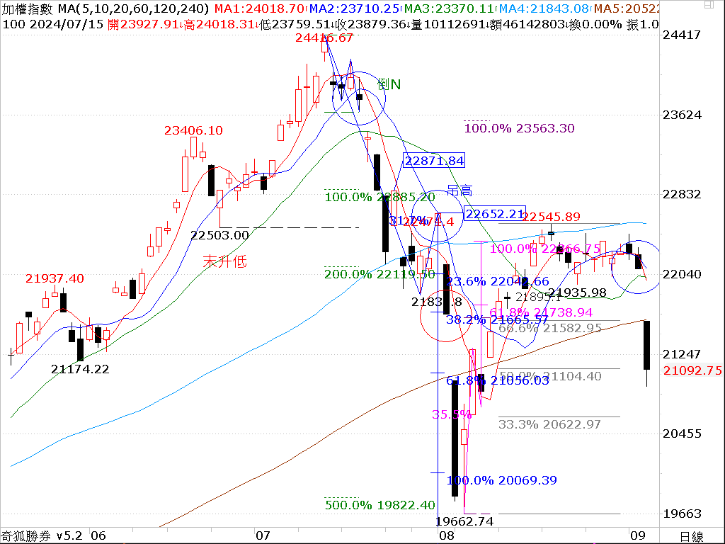 8.8/5滿足 20,069,8/6多頭抵抗日,8/7 日出線強勢反彈